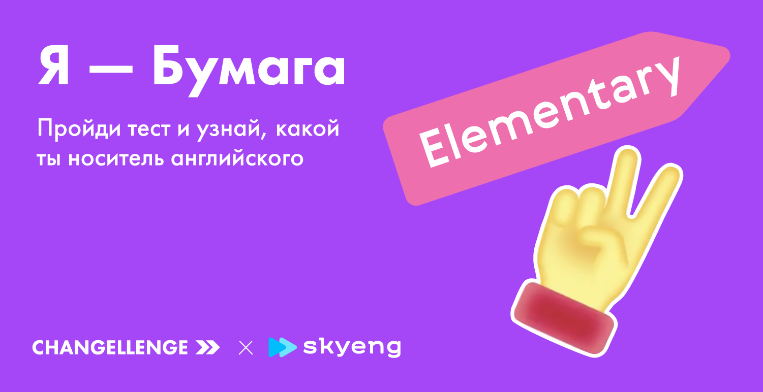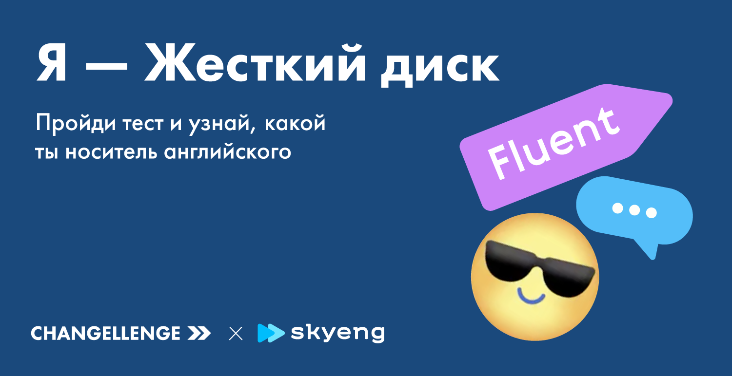 Сегодня без знания английского практически невозможно попасть в топовую компанию. Но как понять, что твой english is very well? Мы подготовили веселый тест, который поможет тебе определить свой языковой уровень и узнать, каким информационным носителем ты был бы в мире английского языка. После прохождения теста ты получишь гарантированные подарки от Skyeng и Changellenge >> Education, которые помогут в два счета прокачать свой уровень до Fluent, а hard skills — до CEO.